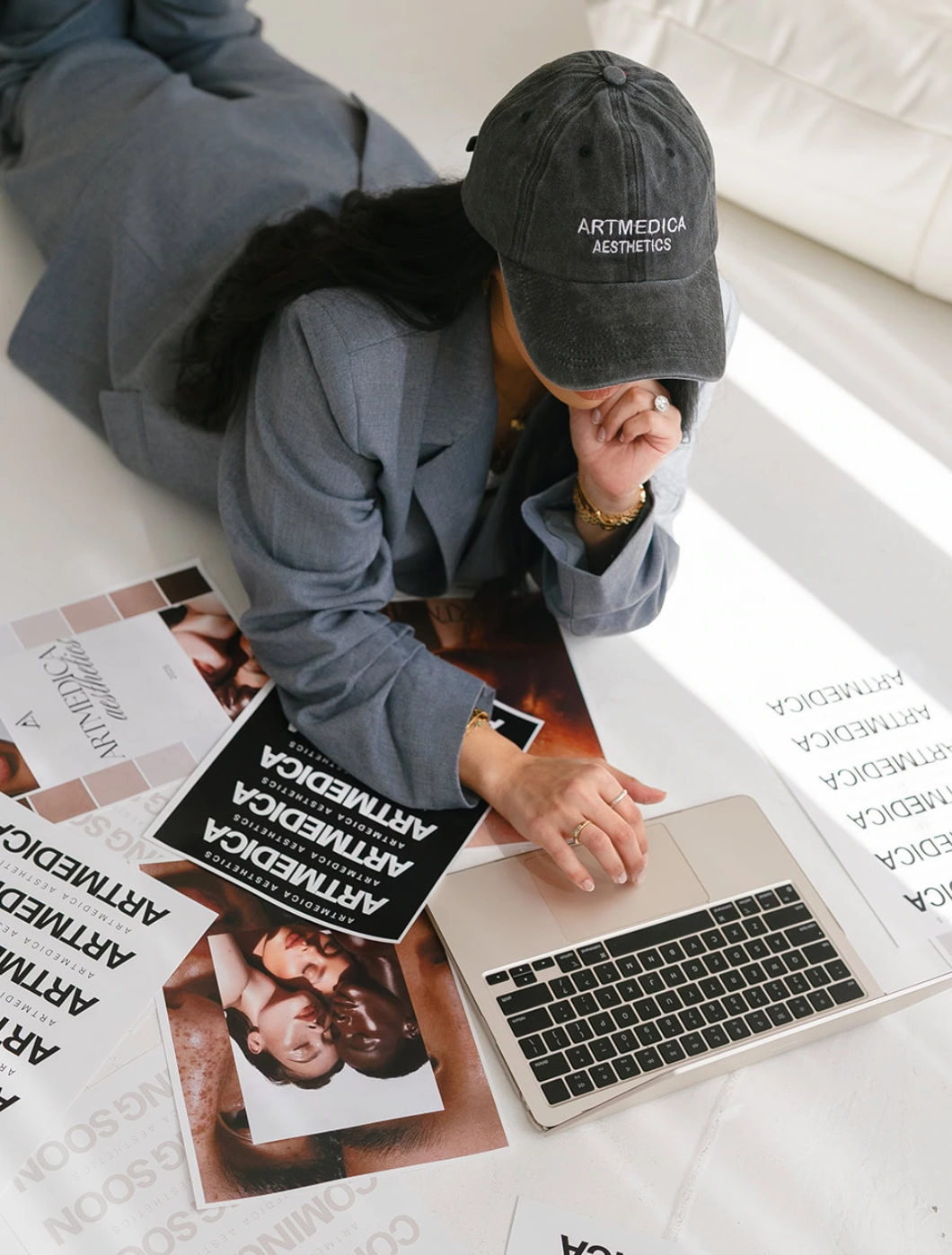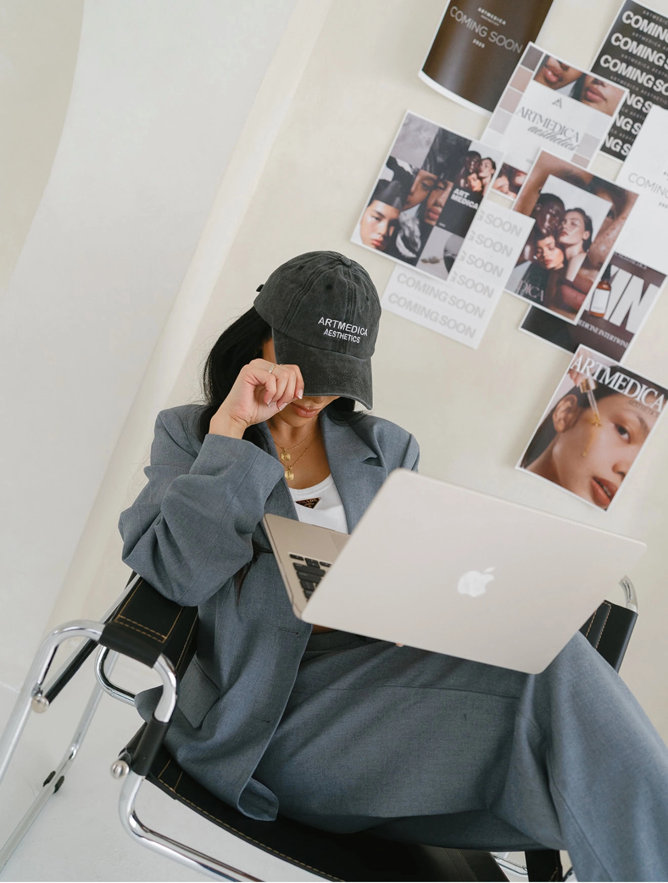The Artmedica Essential Cap is your go-to piece for off-duty days, errands, or post-treatment glow days. Designed in a washed charcoal finish with crisp white embroidery, it pairs modern minimalism with everyday comfort. Crafted from soft cotton twill with an adjustable strap, it’s the perfect balance of laid-back luxury and clinical chic.